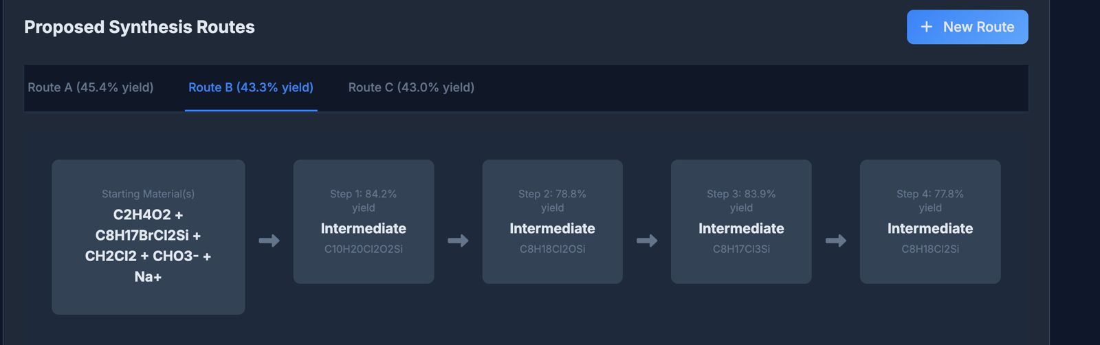 Comprehensive, AI-powered web platform fundamentally accelerating chemical synthesis research. Integrating literature analysis, hybrid synthesis planning, reaction optimization, and logistical cost analysis into a cohesive workflow blending cheminformatics with deep learning.